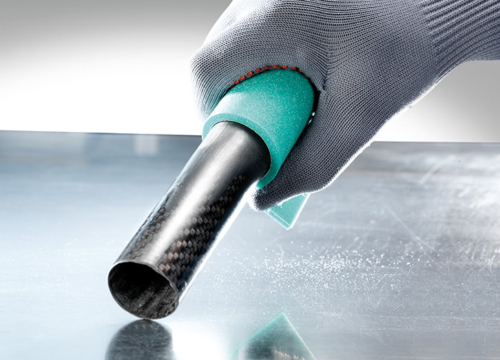 La combinación de material de soporte blando y aglutinante flexible para el grano reduce el embotamiento en estos abrasivos. El polvo de lijado sale continuamente de los espacios entre los granos. Gracias a la utilización de una resina aglutinante elástica y un óptimo proceso de dispersión con una incrustación tridimensional mejorada del grano del abrasivo, se ha podido mejorar aún más el comportamiento de embotamiento. De este modo, nada impide que pueda reutilizarse.